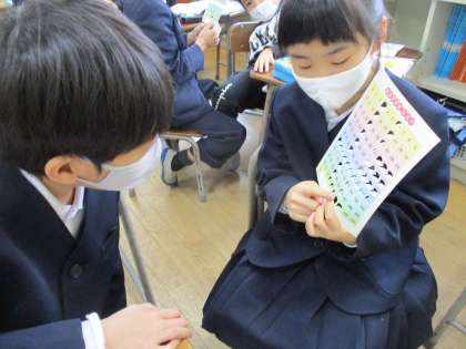 今日は、教科書にあった付録を使って100までの数の並び方について学習しました。一の位や十の位の数に注目して、並び方のきまりについて考えました。