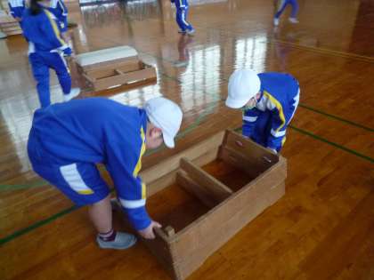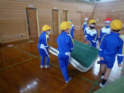 せっせと跳び箱を準備しています。協力しながら準備、片付けをすることはとても大切ですね。