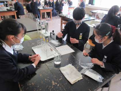理科では、リトマス紙を使って、水溶液の性質を調べました。