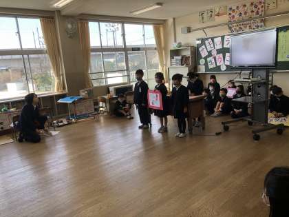 今日は、学習参観があり、2年生はおもちゃ作りを通して気づいたことなどを発表しました。みんな、たくさん練習した成果をお家の方の前で堂々と発表できました。