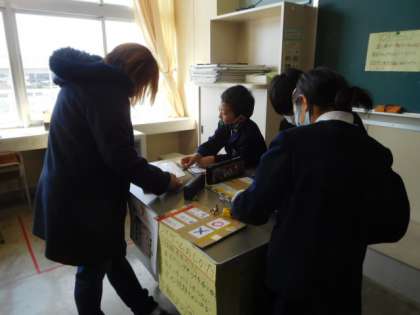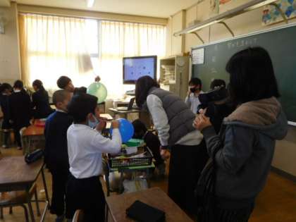 どのような働きを使ったおもちゃなのか、どんなルールなのか、アピールポイントは何かを説明し、遊んでもらいました。振り返りでは、「ありがとう」という声が聞けてよかったという感想が出ました。ハプニングもありましたが、笑顔がいっぱいの時間になりました。次の時間は、1年生を招待して遊んでもらう予定です。