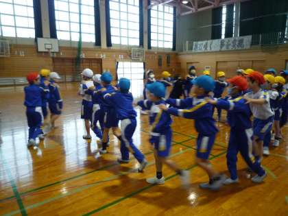 じゃんけん列車とフラフープくぐりを2年生で行いました。フラフープくぐりは3分が目標でしたが、1分55秒というすごい記録で子供たちも大喜びでした。じゃんけん列車はどんどん後ろに並ぶ列が長くなるほどドキドキがふえて楽しそうでした。集会委員会さんのおかげで団結力が深まった瞬間でした。