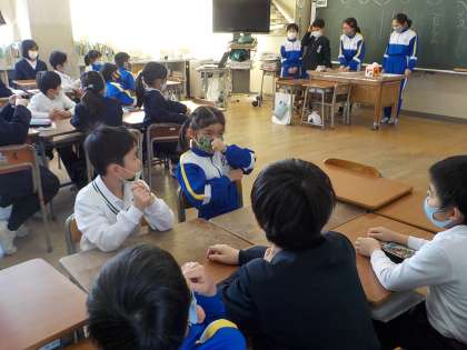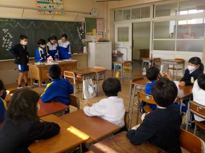 今日の桜っ子タイムは、1年生から5年生で、祝う会の打合せを行いました。実際のプログラムに沿って、進行や内容の確認、役割分担を行いました。5年生は、リーダーシップを発揮して、下級生に説明していました。在校生の力を合わせて、祝う会を成功させましょう。