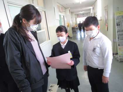 来週の6年生との集会に向けて、6年生に招待状をお渡ししました。司会進行、ゲームの企画など、自分たちでよくがんばっています!