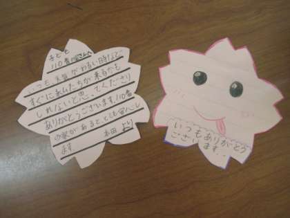 地域の方々に感謝の気持ちを伝える手紙を書きました。自分たちの生活を振り返ってみると、本当に多くの方々に支えられていることに気付くことができたようです。感謝の気持ちが届くといいなと思います。