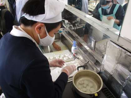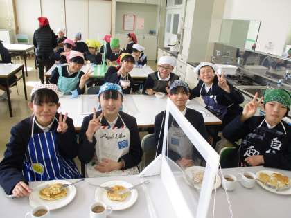 お世話になった教職員のみなさんへの感謝の気持ちを込めながら、一生懸命に作りました。どのグループも協力して、準備・調理・片付けをしている姿も見られ、今までの学習を生かして、がんばっていました。