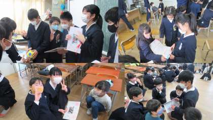 1年間を共にした縦割り班のメンバーとゲームやクイズをやったり、5年生が作成した動画を観たりしながら、楽しい時間を過ごしました。