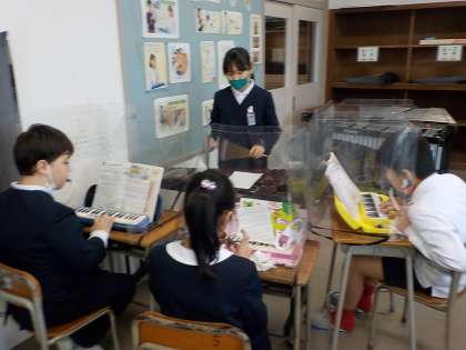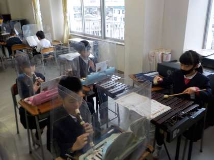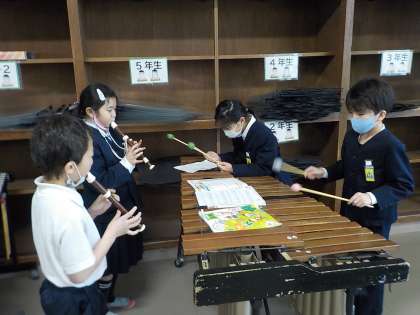 音楽の時間は、4つのパートに分かれて、グループごとに合奏の練習をしました。