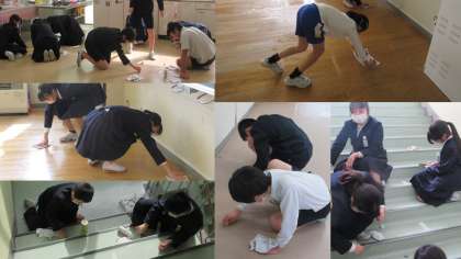 6年生は、お世話になった校舎を一生懸命磨いてきれいにしていました。