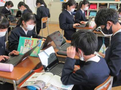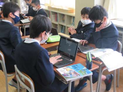 社会科では、1年間のまとめとして、クロムブックで問題をづくりをしています。
