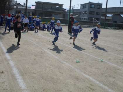 50メートル走の計測しました。みんな秋に測って以来だったので、遅くなっている人もいれば、冬に鍛えられてタイムが速くなっている人もいました。3年生になったときはタイムが速くなっている人が多くなっていてほしいです。