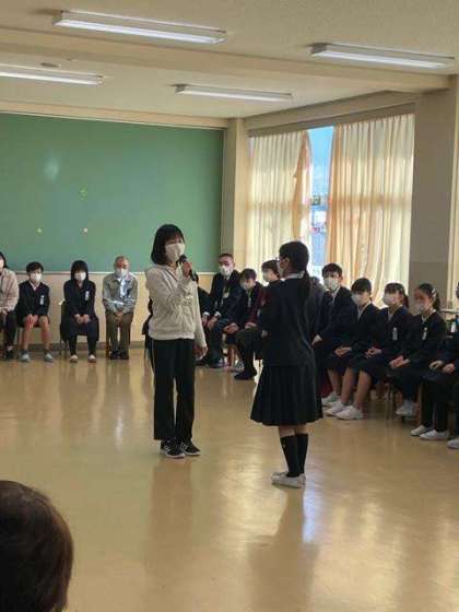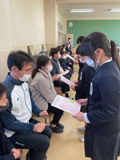 今日の放課後、図工室に桜谷の先生方や職員の皆さんをお招きして、「先生ありがとう集会」を行いました。