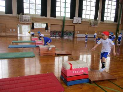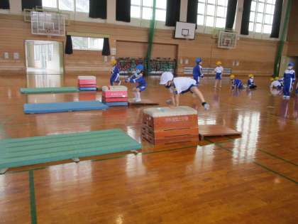 先週まで、跳び箱にチャレンジしていました。手をしっかりつくこと、両足で踏み切ることなど、いくつかのポイントを意識しながら取り組みました。