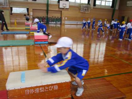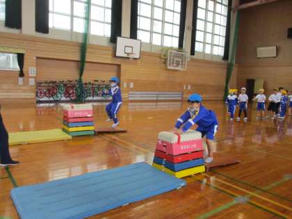 それから跳び箱をしました。跳び箱の準備や後片付けも団のみんなでてきぱきと素早くできるようになり、成長を感じます。今日は、跳べそうな跳び箱を自分で選んでチャレンジしました。高い跳び箱に挑戦する子もいれば、サイズが大きい跳び箱に挑戦する子もいました。