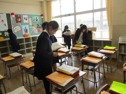 6年生のスタートです。一年間よろしくお願いします。始業式の日は、さっそく最高学年としての大事な仕事がありました。入学式に向けて、どの子も丁寧に、てきぱき準備を行う姿に感心しました。これからの活躍が楽しみになった6年生の1日目でした!