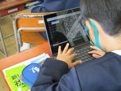 今日は、グーグルアースの機能を使って、興味のある国の位置や国旗などを調べました。