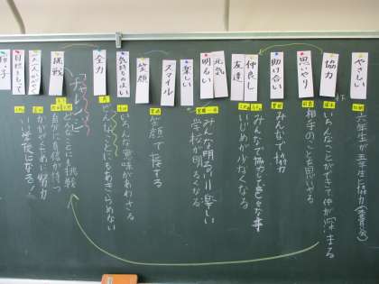 6年生全員で児童会のめあてを話し合いました。入れたい言葉とそれにこめた思いを真剣に発表する姿がすてきでした。今週からは、委員会活動もスタートします。一人一人がよりよい学校のために行動できることを期待しています!