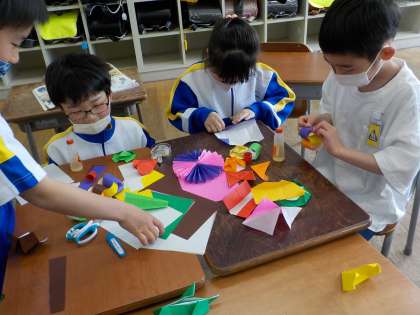 なにやら、準備を進めている様子。気持ちを込めて、飾りをつくったり、クイズの絵をつくったりしていました。