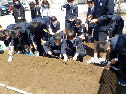 理科の時間、これからの学習で使うじゃがいもを植えました。一人1つずつ植えました。水やりや草取りの作業は、自分たちで行うことになります。じゃがいもを収穫することは主目的ではありませんが、やはり、たくさん収穫できるといいですね。