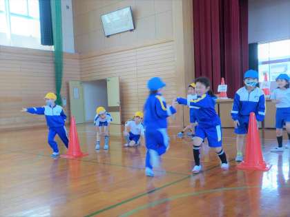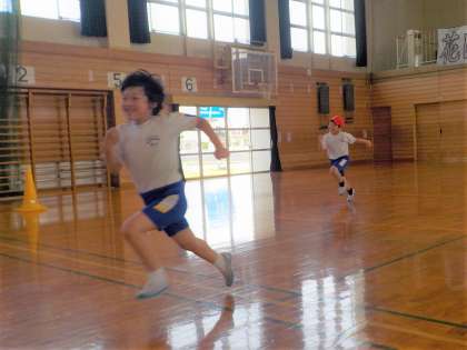 どの子供たちも、力強く走っています。少しずつ走るスピードもあがってきました。まだまだ速くなりそうです!一生懸命走った体育の後は、どの子も汗びっしょりでした。