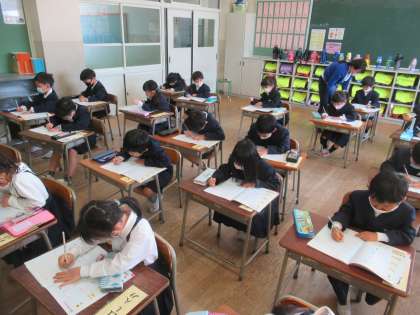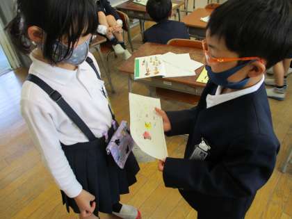 国語科では、自分の名刺を作ってお友達と「よろしくね」と言いながら渡し合いました。算数科では、1〜5の数字をしっかり丁寧に書いて練習しています。