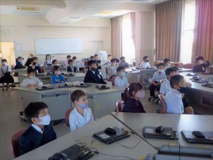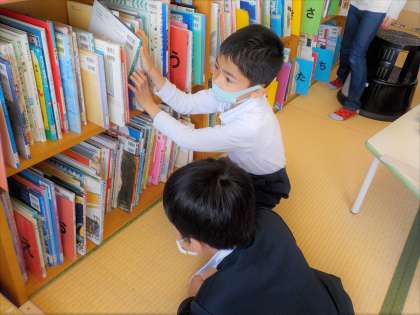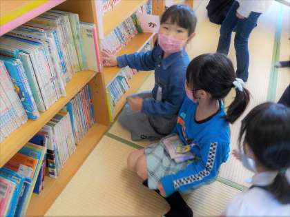 図書オリエンテーションでは、図書室の使い方や本の借り方について、お話を聞きました。その後、今年度初めての本の貸し出しを行いました。本を借りるのを楽しみにしていた子供たち。すごくうれしそうでした。