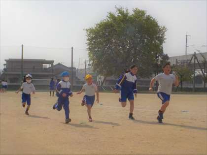 今日から朝トレが始まりました。今年は、5年生さんと一緒に行います。