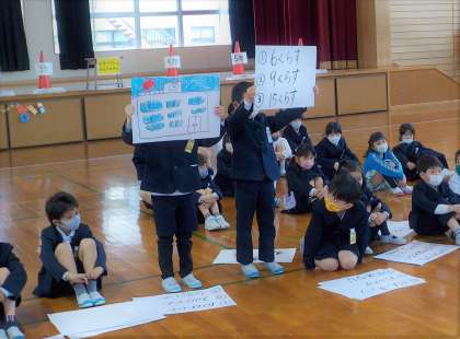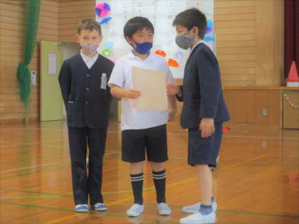 1年生さんと「もっとなかよくなりたい!」と、集会を企画しました。限られた時間の中で、みんなで一生懸命に準備をした子供たち。集会の後には、「すごく緊張したけど大きな声で言えたよ〜!」「1年生さんと友達に一つ近づいた気がする!」と満足した様子でした。金曜日は2組さんと集会をします。たのしみです!