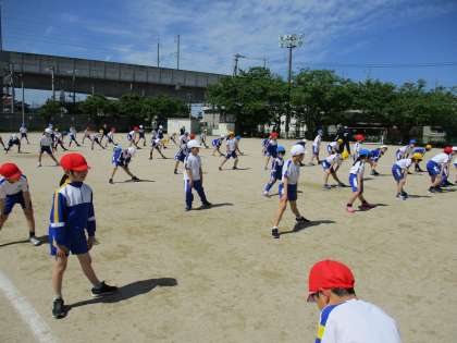 15日の運動会に向けてリレー練習に取り組んでいます。今日から、3・4年生合同の練習を始めました。準備体操では、それぞれの団の列がきちんと揃っていました。一人一人の気持ちの高まりが感じられます。