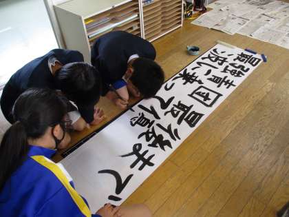 各団のスローガンを筆で力強く書きました。応援合戦で使うグッズも着々と仕上がり、応援も完成に近づいています。運動会、晴れるといいなと思います!