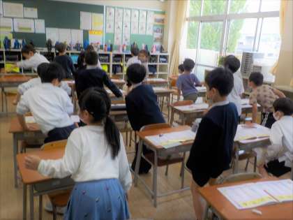 「しり文字で練習をしたい!」とリクエストがあったので、みんなでしり文字で漢字を練習しました。