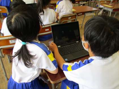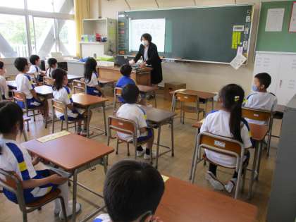 今日は、教頭先生とパソコンの学習をしました。パソコンを使うときのきまりについて考えたり、パソコンを使ってどんな学習ができるのか教えていただいたりしました。そっとパソコンを開いて、友達と一緒に協力しながら起動とシャットダウンをしてみました。来週は、いよいよ一人一台パソコンを使ってみます。