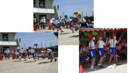 競技も自分の仕事も精一杯取り組みました。他の学年の応援も一生懸命行い、「がんばったね」「おつかれさま」と気持ちのよい言葉を掛けていました。高学年リレーでは、かっこいいバトンパスができ、どの子も力強く走っていました。