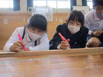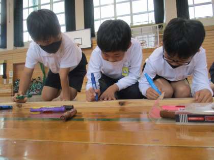真剣に思いを書き込む子供たち。
