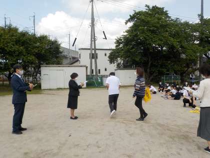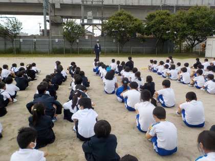 今日の避難訓練は、今年、初めて全校でグラウンドに避難しました。給食室から出火したという想定で、非常階段を使っての避難でした。桜っ子たちは、「おはしも」を意識して、真剣に取り組んでいました。
