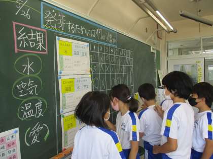 今日の授業で、種子が発芽するためには、「水」「空気」「適当な温度」が必要であることが分かりました!