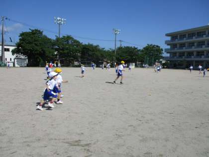 今日の朝の体力作りは、六年生さんとこおりおにをしました。かっこいい六年生さんといろんな遊びができてうれしそうです。「六年生さんあこがれるなあ」という声を聞きます。みんなもそんなかっこいいおにいさんおねえさんになれるように、すこしずつがんばりましょうね!