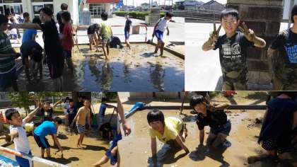 泥と水をかき混ぜる作業は想像以上に大変でしたが、みんなでがんばりました。