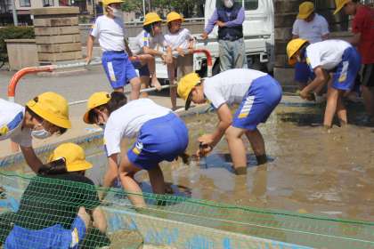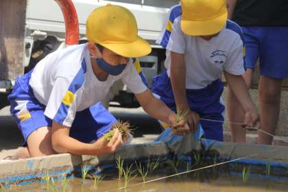 子供たちは、一苗一苗、丁寧に植えていきました。