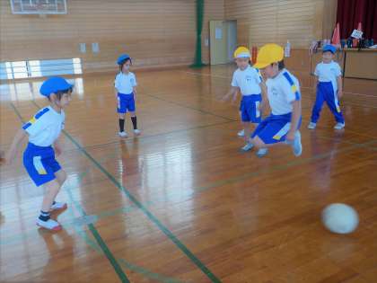体育科では、今までの練習を生かして、ころがしドッチボールをしました。相手をねらってボールを投げたり、ジャンプをしてよけたりと、上手に体を動かしていました。
