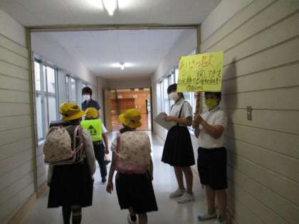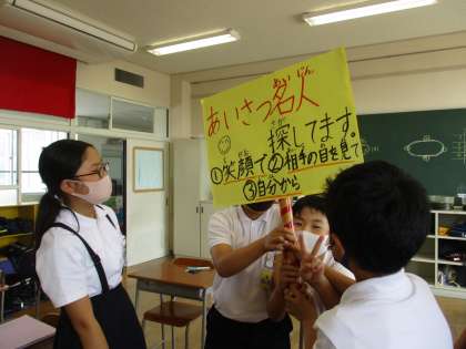 運営委員会が企画した、「みんなでチャレンジあいさつウィーク」が始まりました。今日は「あいさつ看板」を持って、桜っ子とあいさつを交わし、あいさつ名人を放送で発表しました。低学年のみんなのあいさつが元気ですてきでした。明日はどうでしょう?楽しみです。