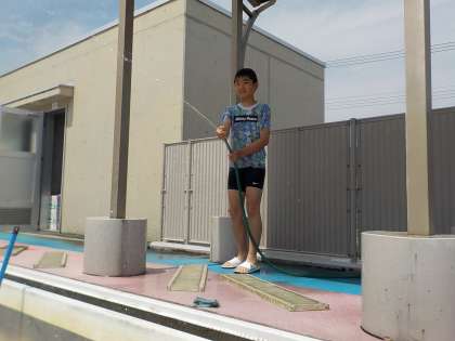 プール清掃を行いました。プールの側面や底についた泥汚れをスポンジで一生懸命磨いていました。天気もよく、水に濡れて気持ちよく活動することができました。6年生の働きでとてもきれいになったプール!桜っ子のみんなに楽しく安全に使ってほしいです。