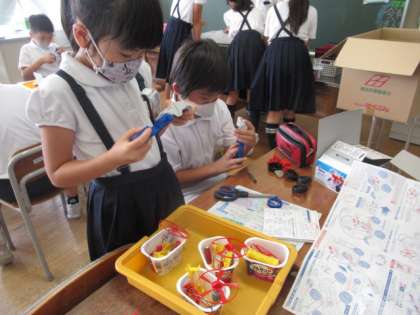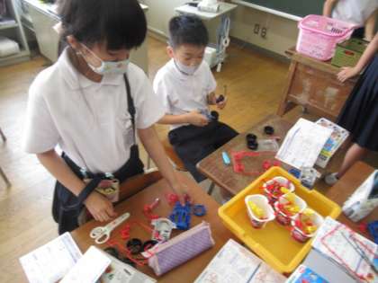 これまで、モーターにプロペラをつけ、「どのように電池2つをつなげばプロペラが速くまわるのか」について考えてきました。今日はプロペラで動く車を作り、次の理科の時間にこれまでの学習を生かして、車を動かしてみます。