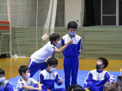キャンドルサービスでは、みんなでろうそくの火を見つめながら、しっとりと今日の楽しい思い出を振り返りました。火の神から火をいただく代表の子供たちは、立派にこれからの自分について宣言していました。出し物のゲームも、どれもユニークで笑いっぱなしのすてきな時間になりました。