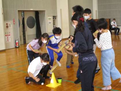 2日目の活動は「立山ジョイフレンド」です。様々なゲームを通して、友達と認め合ったり試行錯誤したりする大切さや面白さを学びました。子供たちは、4つのゲームにどれも夢中になって取り組み、話し合いながら進めていました。みんなのいい表情、すてきな言葉掛けがたくさん発見できた時間でした。