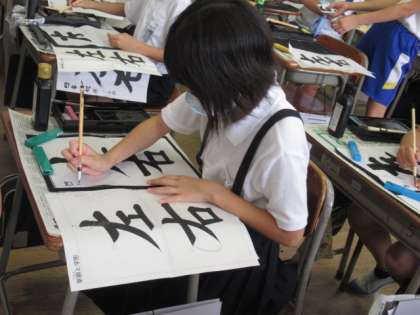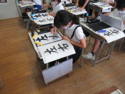 7月8日(木) 【書写】毛筆「左右」 4年生