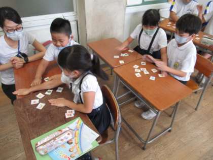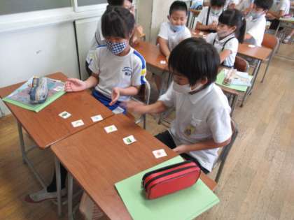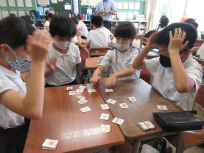 6時間目の外国語活動では、カルタゲームやキーワードゲームをして、曜日の英単語や“What day is it?”の言い方に慣れ親しみました。