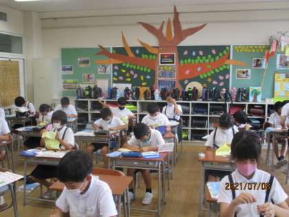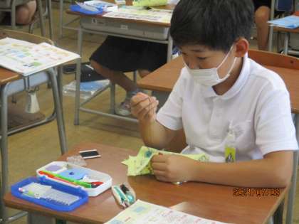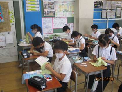 今日は、「ボタンの付け方」や「なみ縫い」の学習に取り組みました。