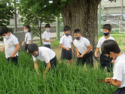 今日は、朝活動の時間に、西井さんからいただいた肥料をまいたり、草むしりをしたりしました。
