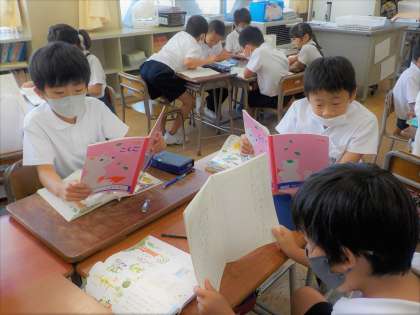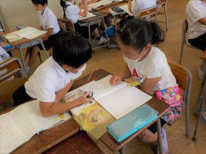 国語科では、夏のことばあつめをしました。「夏と言えば・・・・」と、いろいろな言葉をあつめていました。友達とノートを見せ合うと、「せんぷうき!いいねぇ〜」「ウォータースライダーは思いつかなかったよ!すごい!」など、自然と友達にすてきだと思うところを伝えていて、心があたたかくなりました。